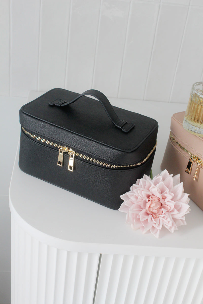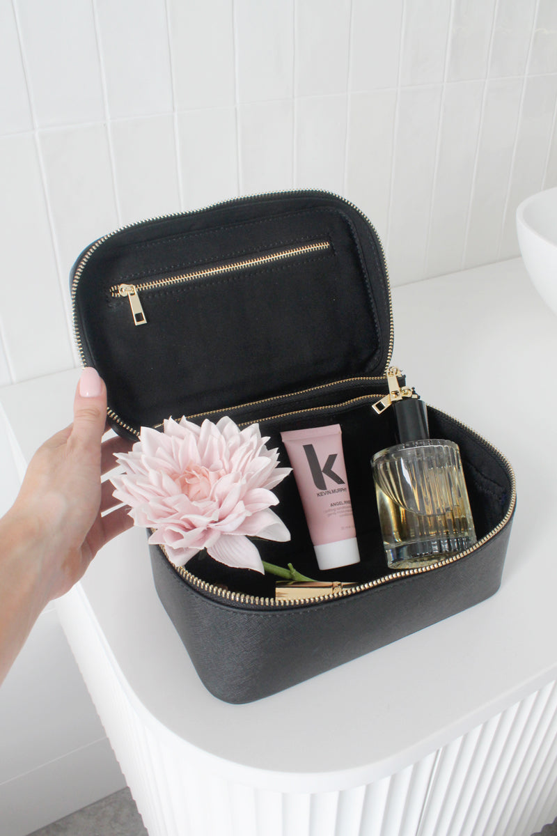 Black Saffino Leather Cosmetic Case
