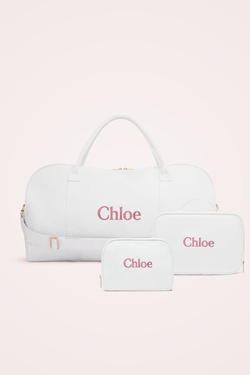 White Personalised Bag Set — Duffle, Vanity & Makeup Bag
