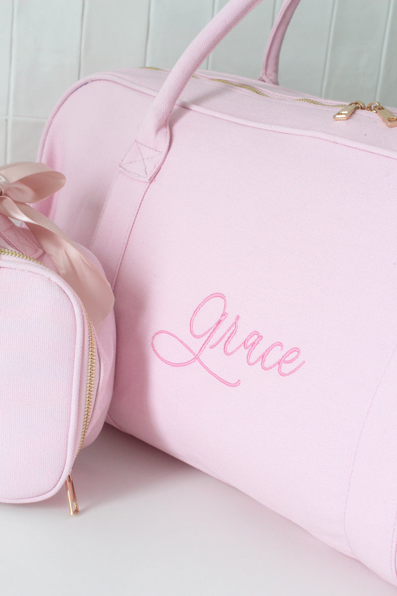 Our blush pink duffle bag is constructed from a premium cotton-canvas our duffle bags are fully lined, feature rose gold hardware & zippers and have numerous pockets and zipped compartments to keep your belongings safe. With the addition of a removable shoulder strap our bags can be worn several ways.