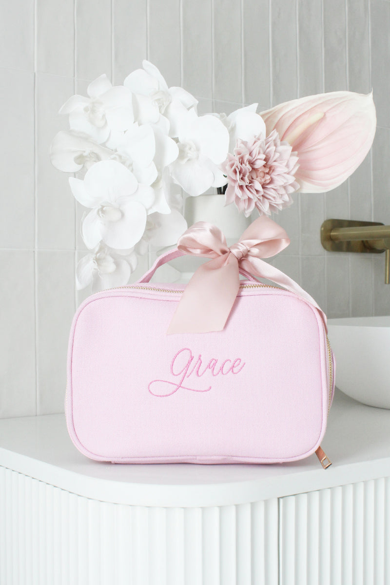 Personalised Embroidered Vanity Case – Blush Pink
