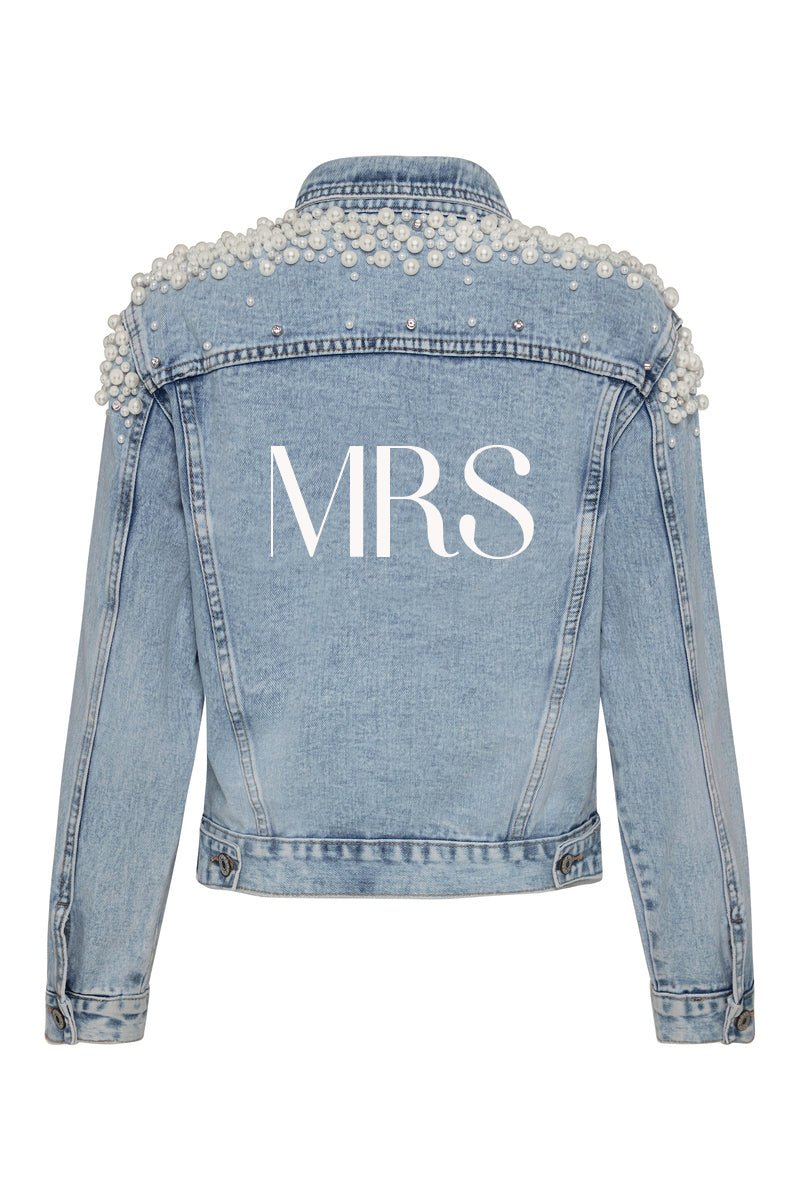 Our MRS jacket is perfect for the bride and bride to be, featuring pearl and rhinestone encrusted shoulders, it will add a touch of luxe to your look.