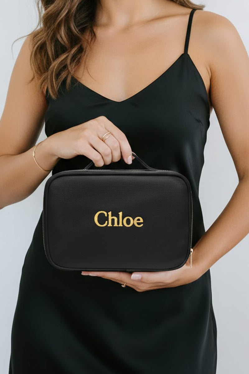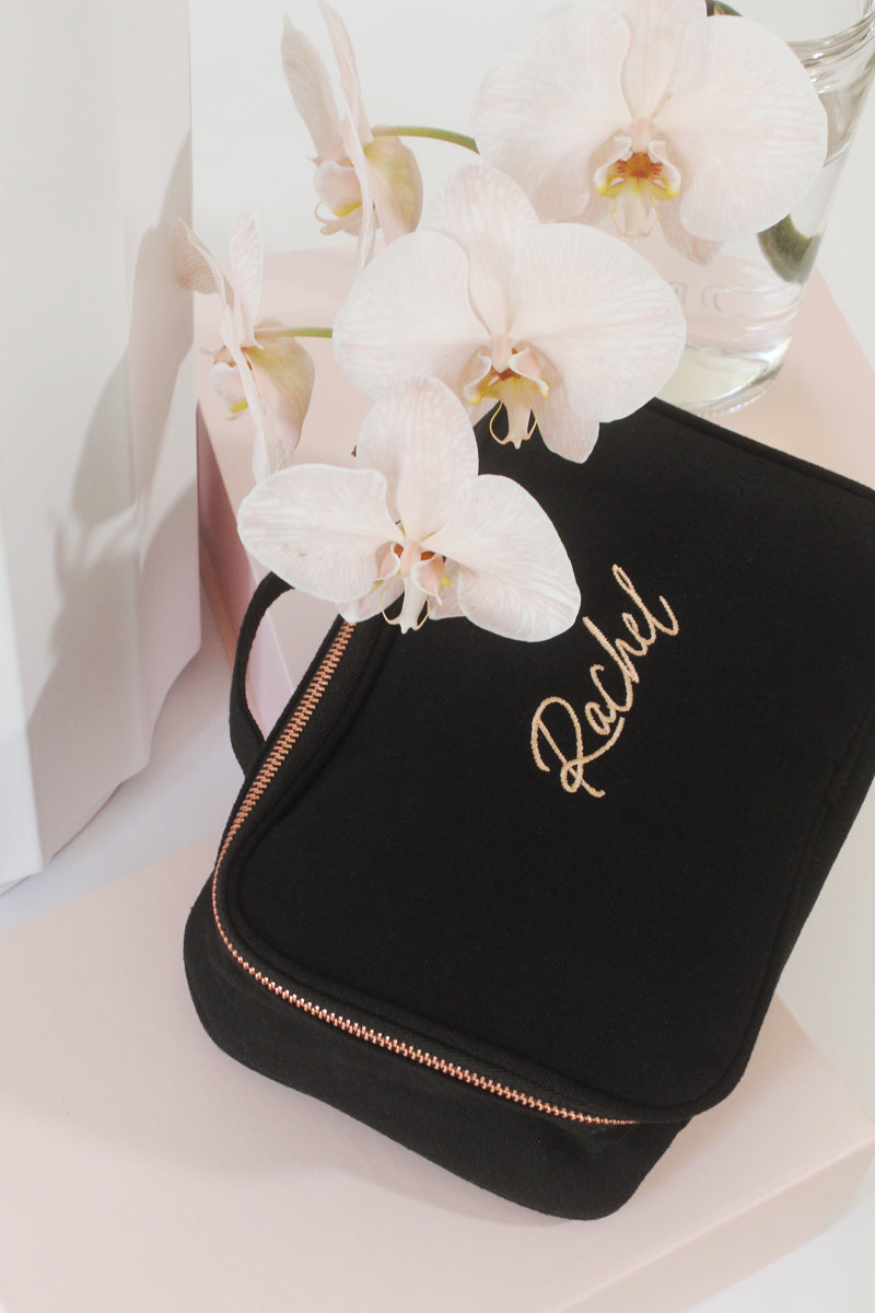 Personalised Embroidered Vanity Case – Black